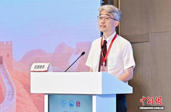 8月23日,吉林長(zhǎng)春,日本明治學(xué)院大學(xué)國(guó)際和平研究所客座研究員石田隆至在紀(jì)念中國(guó)人民抗日戰(zhàn)爭(zhēng)暨世界反法西斯戰(zhàn)爭(zhēng)勝利80周年與東北抗聯(lián)研究國(guó)際學(xué)術(shù)研討會(huì)上分享研究成果。(吉林大學(xué)國(guó)家革命文物協(xié)同研究中心供圖)