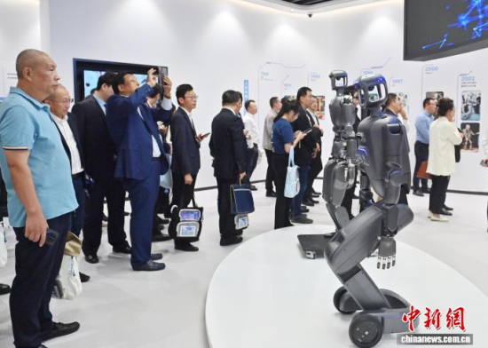 9月30日,吉林長春,參觀者觀看科技文旅機(jī)器人。當(dāng)天,吉林省仿生機(jī)器人創(chuàng)新中心應(yīng)用示范基地于吉林省長春市揭牌,全國首家“仿生機(jī)器人MALL”也在同期開幕。該基地集展示、體驗、科普、銷售等功能于一體,致力于打造沉浸式科技消費(fèi)新地標(biāo)。中新社記者 張瑤 攝