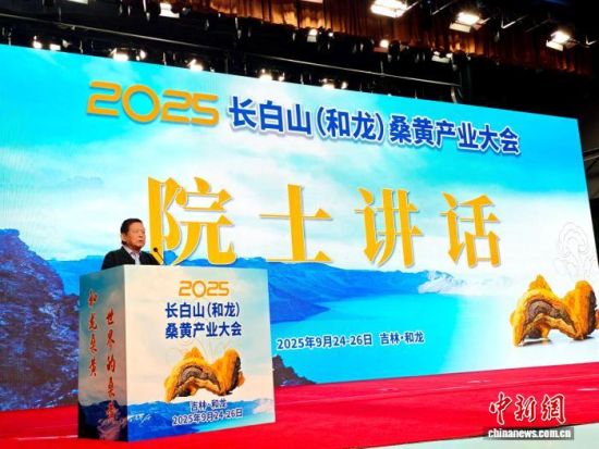 2025長(zhǎng)白山(和龍)桑黃產(chǎn)業(yè)大會(huì)25日在吉林省和龍市開幕,圖為中國工程院院士李玉正在致辭。