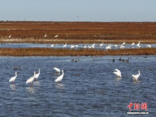 10月5日,吉林鎮(zhèn)賚,一群白鶴在二龍濤河覓食!∨岁申 攝