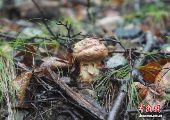 9月20日,吉林延邊,和龍林業(yè)局青山林場(chǎng)的松茸破土而出。 李軍俊 攝