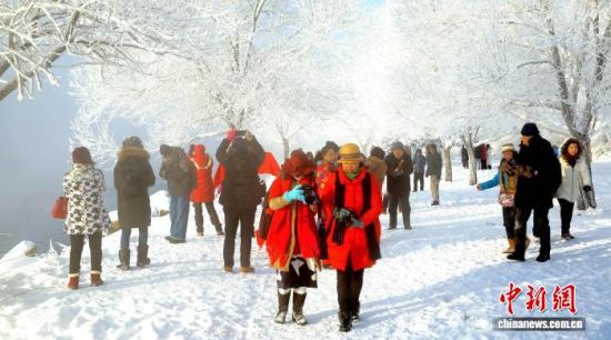冰雪旅游市場(chǎng)為吉林航空運(yùn)輸提供客源基礎(chǔ),圖為游客觀賞吉林霧凇。(資料圖) 吉林市委宣傳部供圖